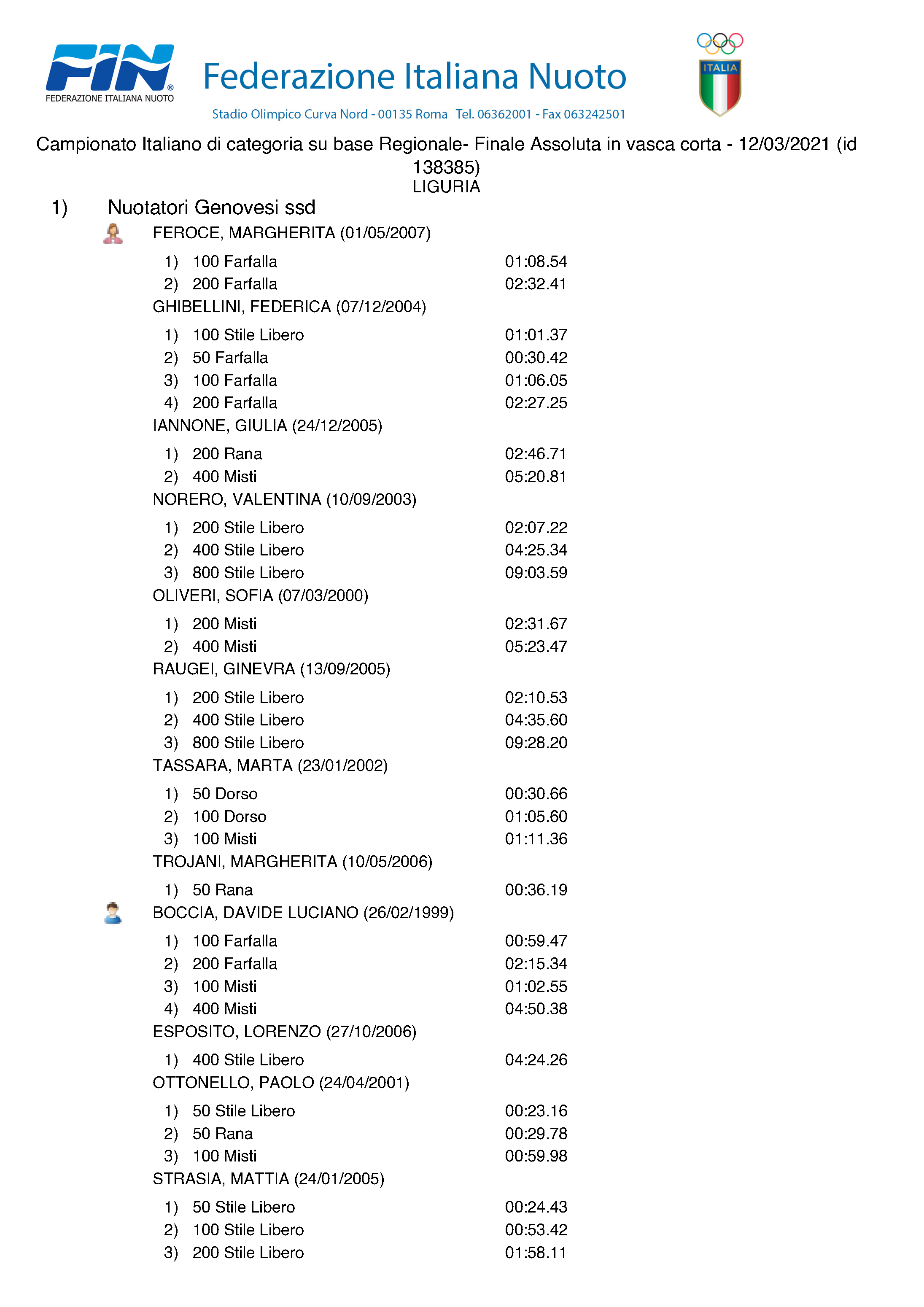 Tutto pronto per i primi verdetti della stagione. Venerdì 12, sabato 13 e domenica 14 marzo si disputeranno alla piscina Sciorba di Genova le Finali del Campionato Regionale Assoluto di nuoto. In palio i titoli regionali assoluti e le prime medaglie della stagione in vasca corta. A contenderseli saranno gli atleti che hanno ottenuto la qualificazione, classificandosi nei primi 16 posti delle rispettive gare.